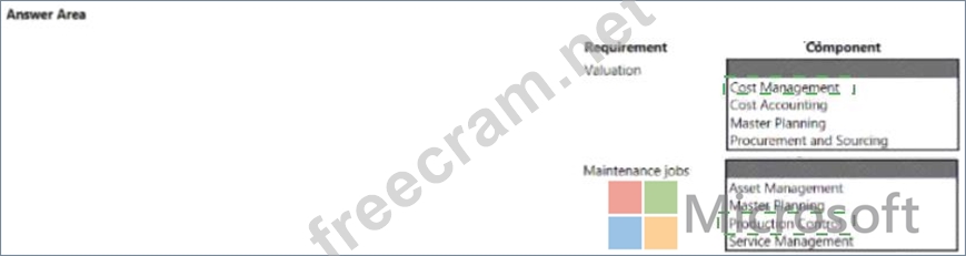 Which component of Dynamics 365 Supply Chain Management should you configure? To answer, select the appropriate options in the answer area.