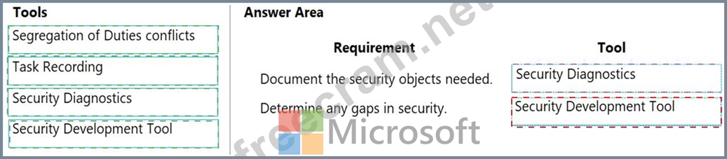 Which tools should you use? To answer, drag the appropriate tools to the correct requirements. Each tool may be used once, more than once, or not at all. You may need to drag the split bar between panes or scroll to view content.