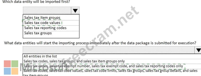 A company sets up a data package to import data by using the data management framework. You have the following data entity sequence.
