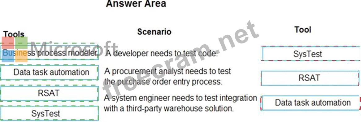 Which tools should you use? To answer, drag the appropriate tools to the correct requirements. Each tool may be used once, more than once, or not at all. You may need to drag the split bar between panes or scroll to view content.