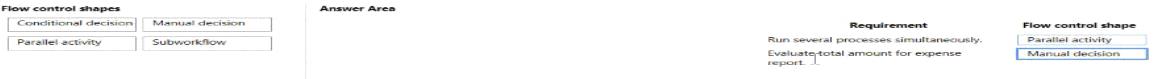 Which flow control elements should you use? To answer, drag the appropriate flow control shapes to the correct requirements. Each flow control shape may be used once, more than once, or not at all. You may need to drag the split bar between panes or scroll to view content.