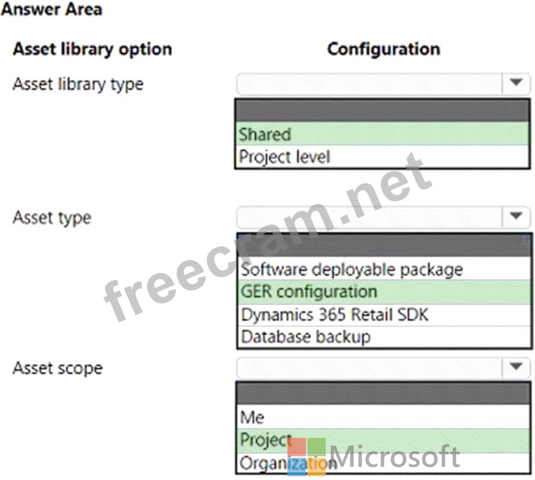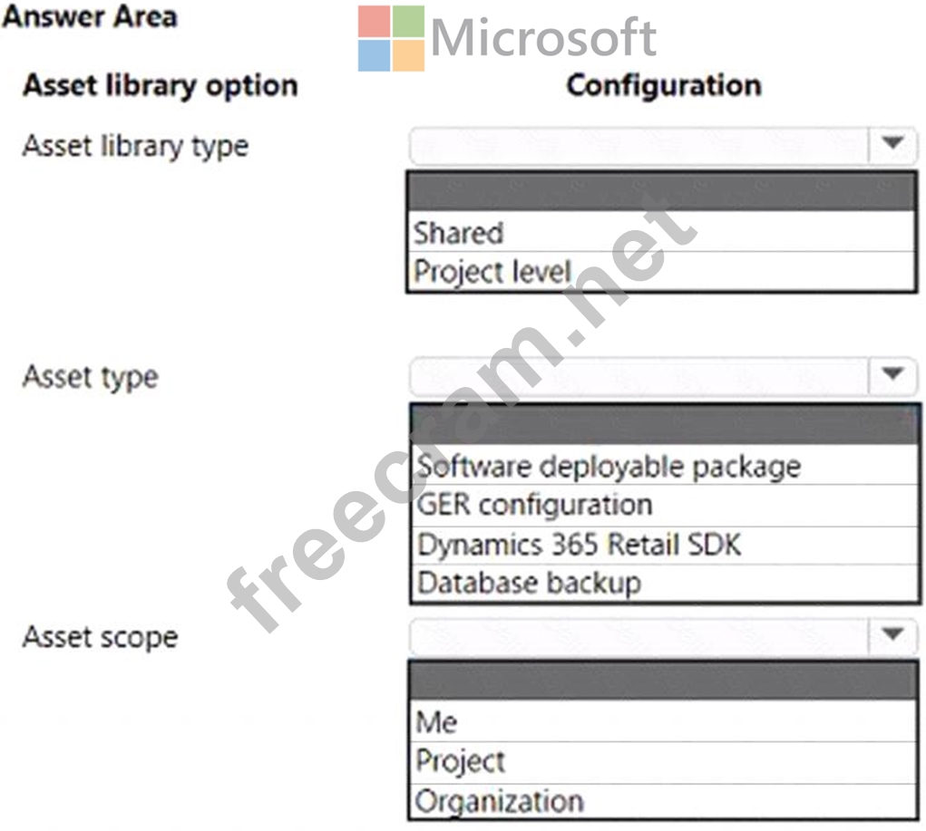 How should you configure the asset libraries? To answer, select the appropriate options in the answer area.