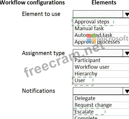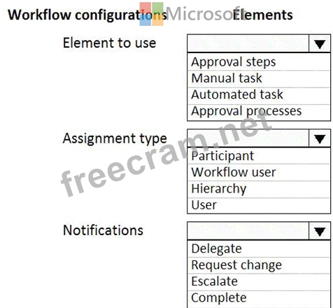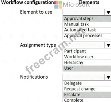 Which workflow elements should you configure? To answer, select the appropriate options in the answer area.