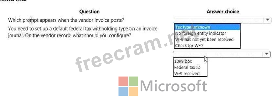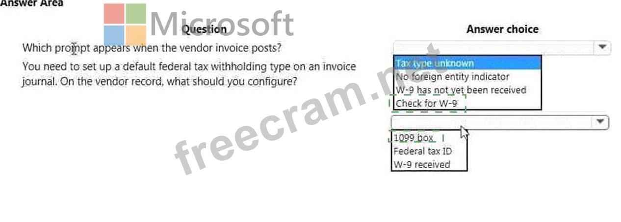 A client plans to use Dynamics 365 for Finance and Operations for year-end 1099 reporting in the United States. You are viewing a vendor master data record on the 1099 FastTab.