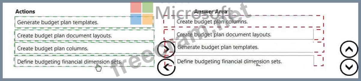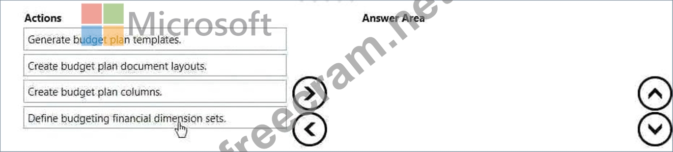 A company needs to create budget plan templates for its budgeting process. You need to create the budget plan templates. In which order should you perform the actions? To answer, move all actions from the list of actions to the answer area and arrange them in the correct order.