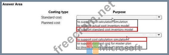 For which purpose should you use each costing type? To answer, select the appropriate options in the answer area.