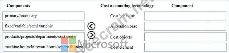 To answer, drag the appropriate component to the correct cost accounting terminology. Each source may be used once. You may need to drag the split bar between panes or scroll to view content.