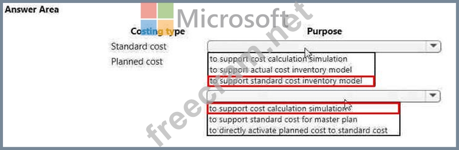 For which purpose should you use each costing type? To answer, select the appropriate options in the answer area.