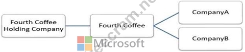 Fourth Coffee has set up CompanyA and CompanyB in their Dynamics 365 Finance and Operations environment to gain better visibility into the companies' profitability. CompanyA and CompanyB will continue to operate as subsidiaries of Fourth Coffee, but all operational companies will be consolidated under Fourth Coffee Holding Company in US dollars (USD) for reporting purposes.