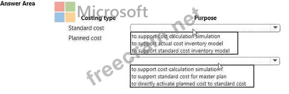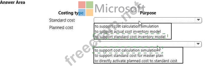 For which purpose should you use each costing type? To answer, select the appropriate options in the answer area.