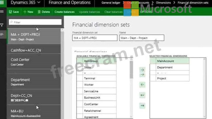 Question 103: You Create a financial dimension set named MA + DEPT+PROJ as...