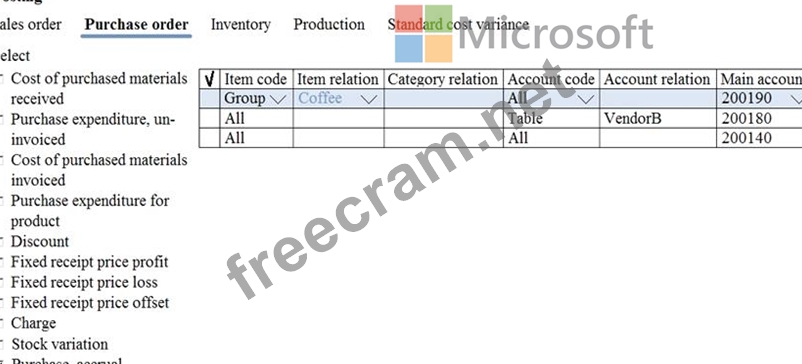 Question 19: The posting configuration for a purchase order is shown as f...