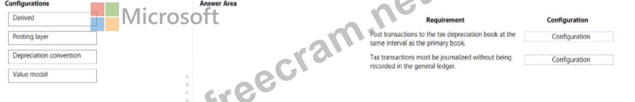 A company is implementing Microsoft Dynamics 355 -Finance. The company plans to Implement the fixed asset module. You have the full awing requirements: