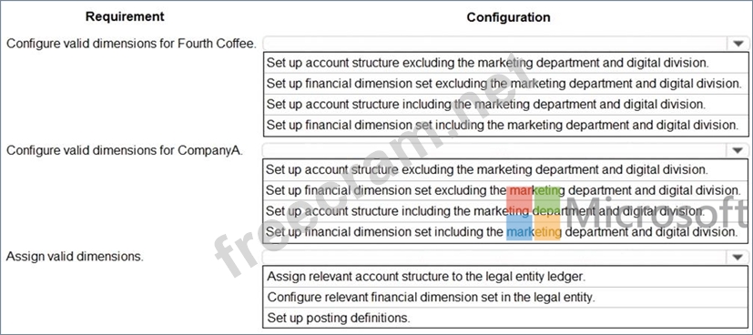 1 commentQuestion 55: You are implementing Dynamics 365 Finance. The company charg...
