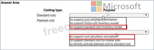 For which purpose should you use each costing type? To answer, select the appropriate options in the answer area.