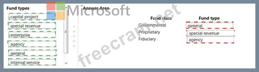 Which fund type can you set up for each fund class? To answer, drag the appropriate fund types to the correct fund classes. Each fund type may be used once, more than once, or not at all. You may need to dreg the split bar between panes or scroll to view content.