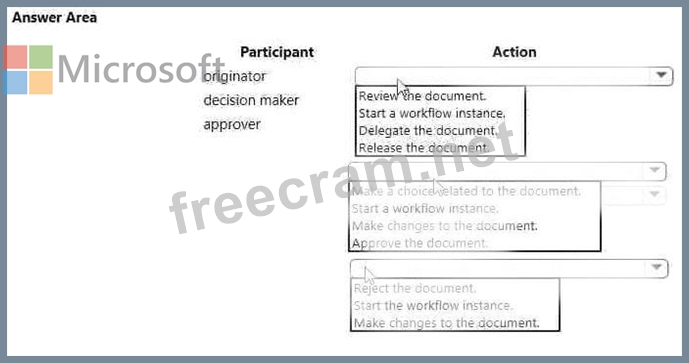 Which action can each participant perform? To answer, select the appropriate option in the answer area.