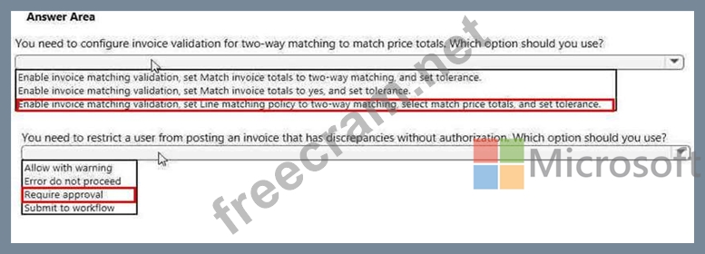 Question 20: You need to configure invoice validation for vendors in Dyna...