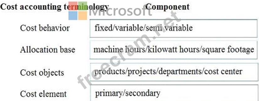 To answer, drag the appropriate component to the correct cost accounting terminology. Each source may be used once. You may need to drag the split bar between panes or scroll to view content.