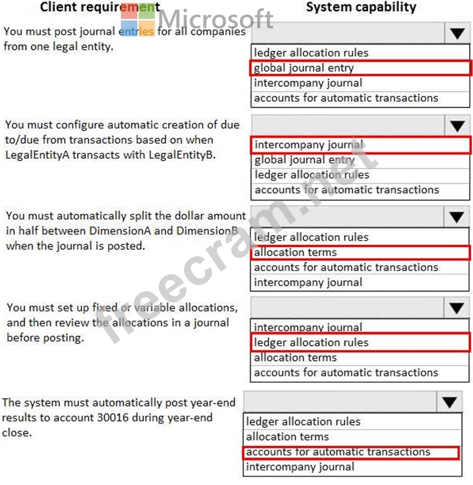 Question 87: A client plans to use Dynamics 365 for Finance and Operation...