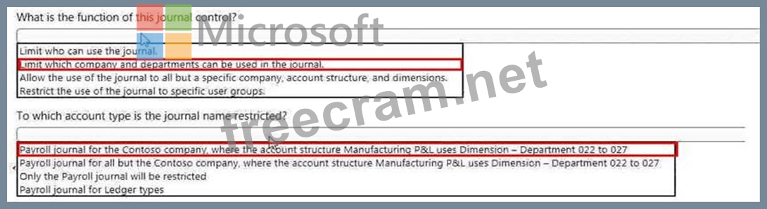 Question 112: You must configure journal controls in Dynamics 365 for Fina...