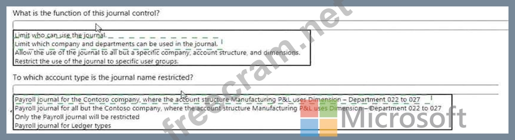 Question 112: You must configure journal controls in Dynamics 365 for Fina...