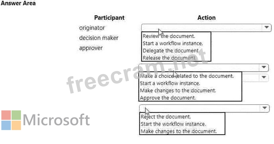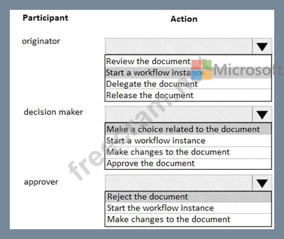 Which action can each participant perform? To answer, select the appropriate option in the answer area.