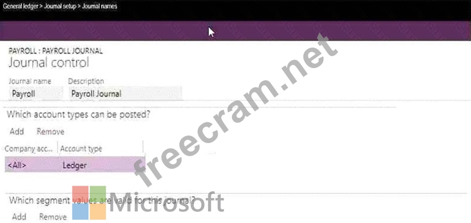 Question 41: You must configure journal controls in Dynamics 365 for Fina...