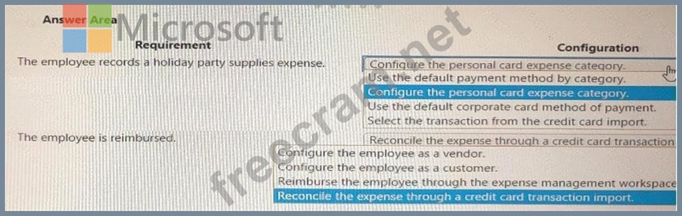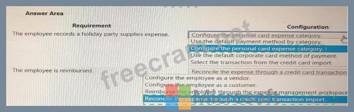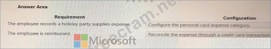 How should you configure the expense module? To answer, select the appropriate options in the answer area.
