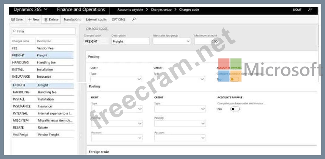 Question 92: You need to configure an Accounts payable charge for freight...
