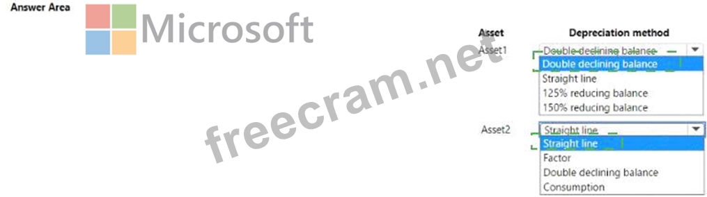 Which depreciation method should you use? To answer, select the appropriate options in the answer area.