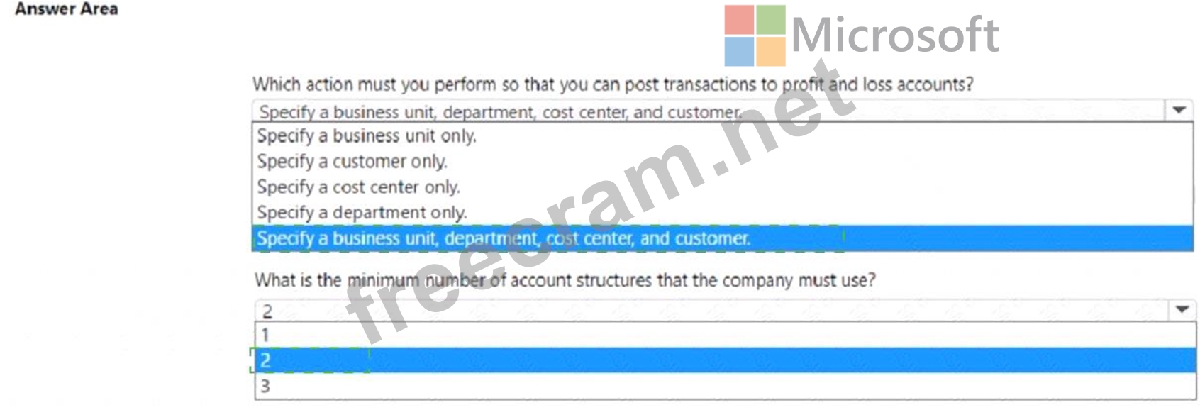 Question 43: A company uses Microsoft Dynamics 365 Finance and Dynamics 3...