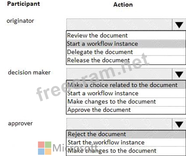 Which action can each participant perform? To answer, select the appropriate option in the answer area.
