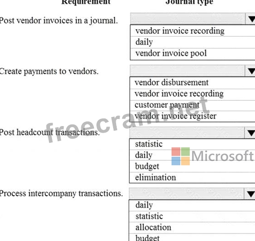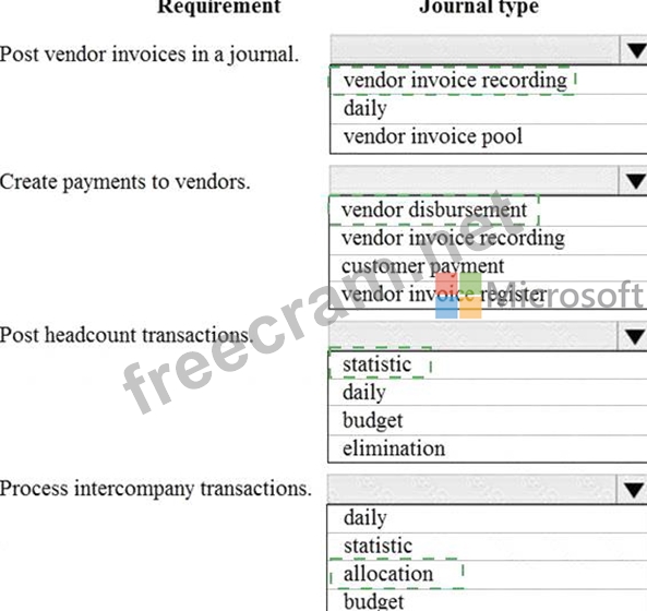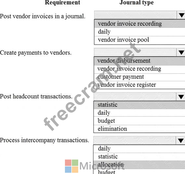 Which journal types should you use? To answer, select the appropriate configuration in the answer area.