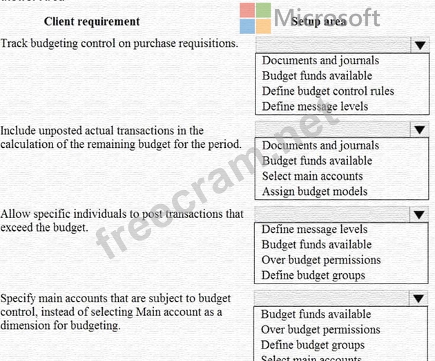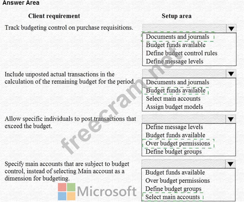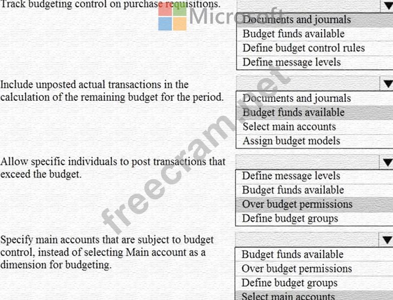 Question 90: A customer uses Dynamics 365 Finance to manage budgets. You ...