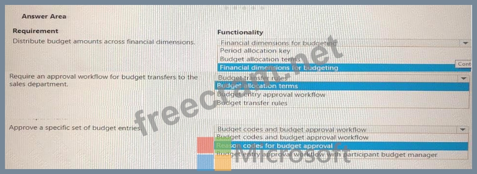 Question 90: A customer uses Dynamics 365 Finance to manage budgets. You ...