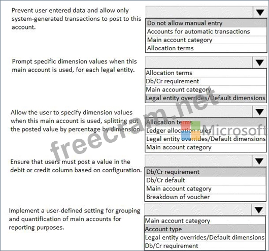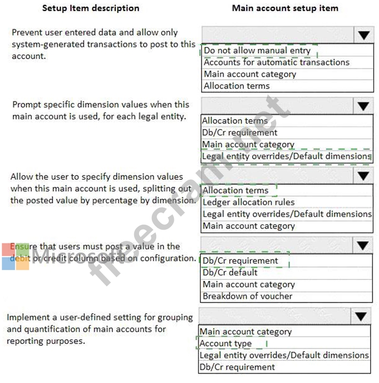 Question 127: You are setting up main accounts in Dynamics 365 for Finance...