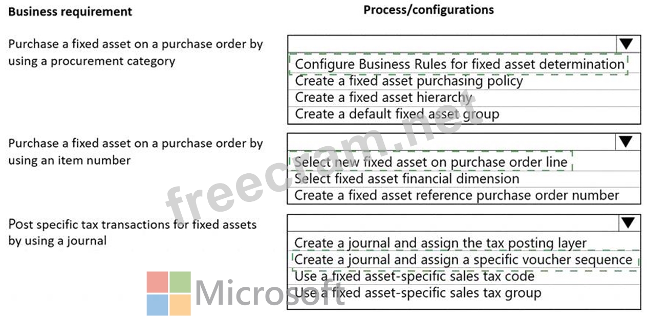 Question 35: A company uses Microsoft Dynamics 365 Finance to manage fixe...