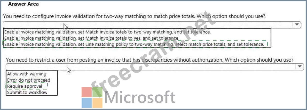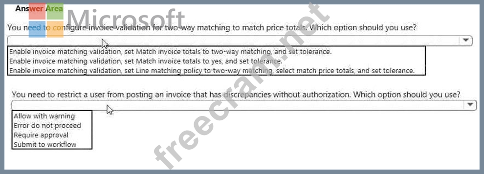 Question 43: You need to configure invoice validation for vendors in Dyna...