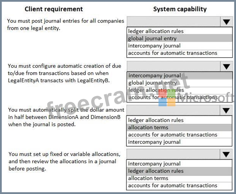 Question 120: A client has multiple legal entities set up in Dynamics 365 ...
