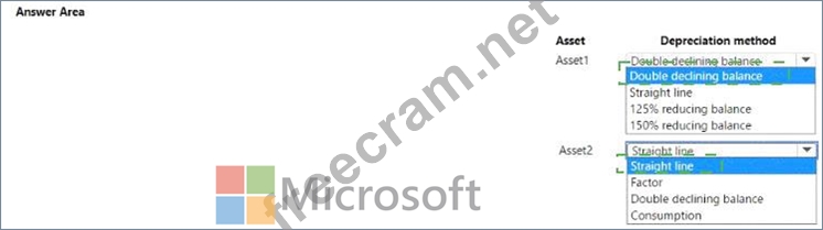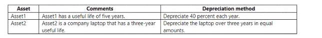 Which depreciation method should you use? To answer, select the appropriate options in the answer area.