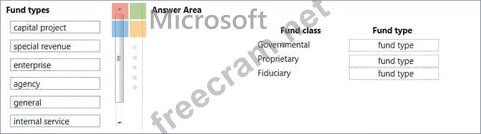 Which fund type can you set up for each fund class? To answer, drag the appropriate fund types to the correct fund classes. Each fund type may be used once, more than once, or not at all. You may need to dreg the split bar between panes or scroll to view content.