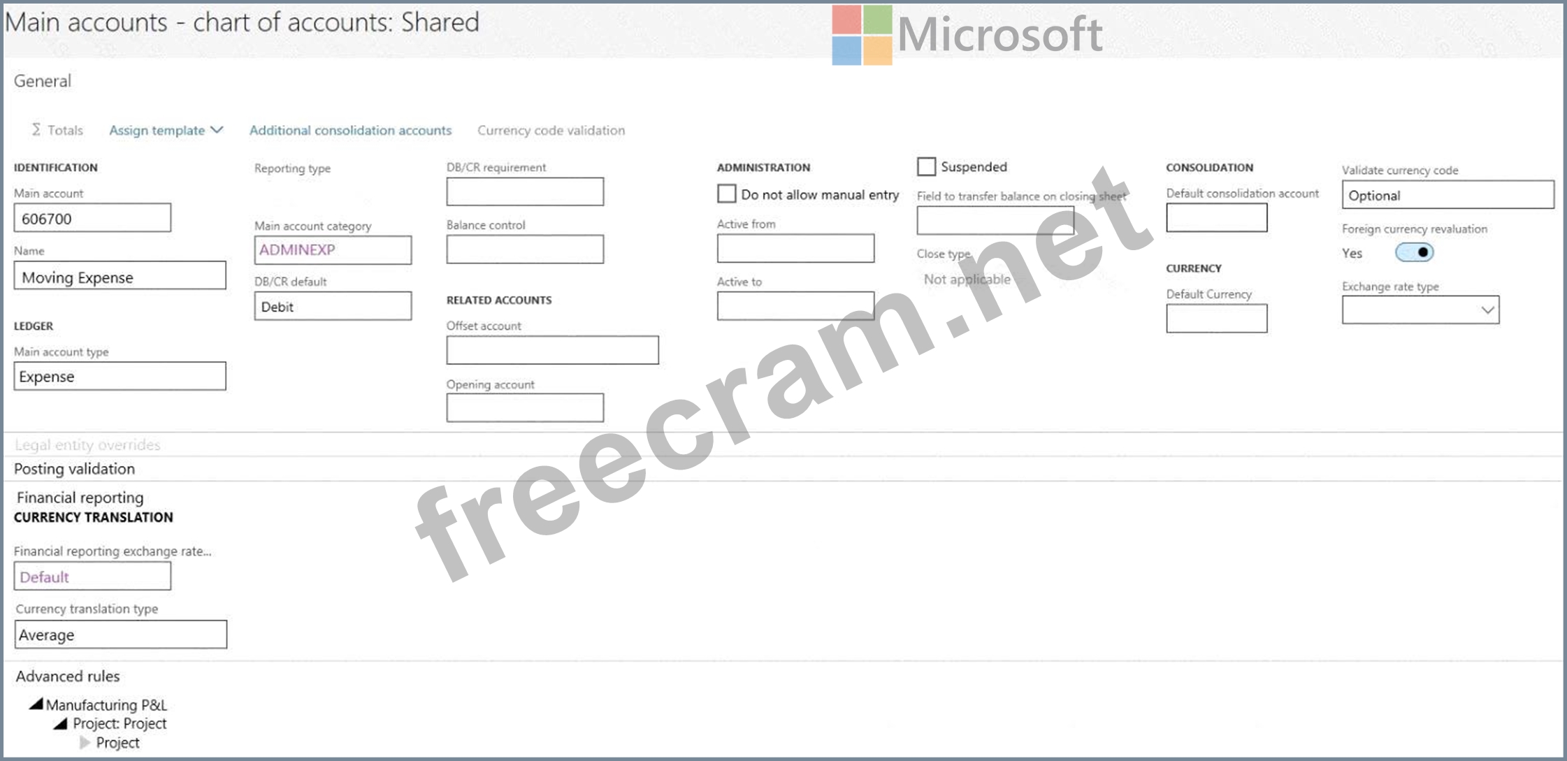 You are asked to configure a main account in Dynamics 365 Finance.