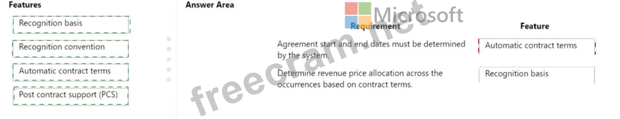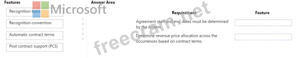 You are implementing revenue recognition functionality in Microsoft Dynamics 365 Finance. You need to configure revenue schedules to meet the following requirements: