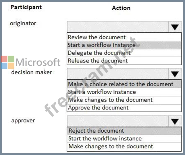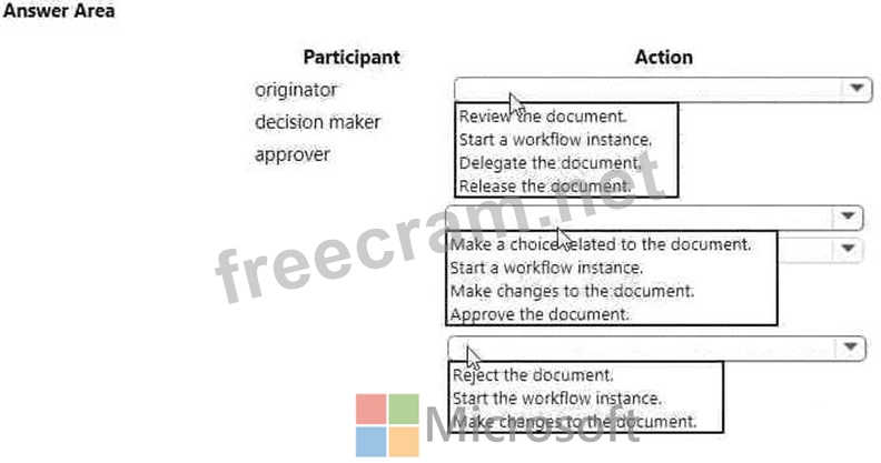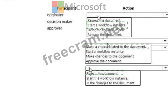 Which action can each participant perform? To answer, select the appropriate option in the answer area.