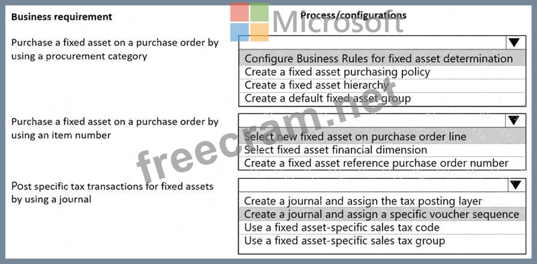 Question 98: A company uses Microsoft Dynamics 365 Finance to manage fixe...