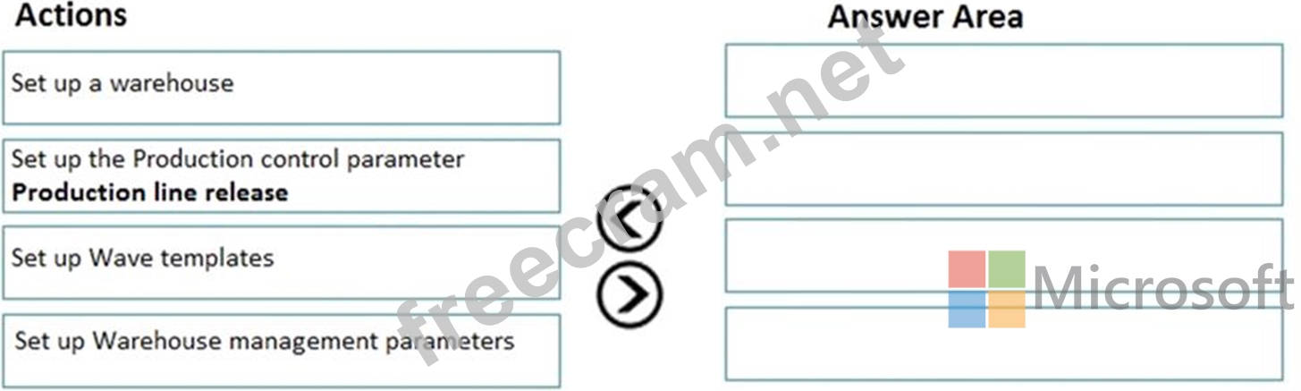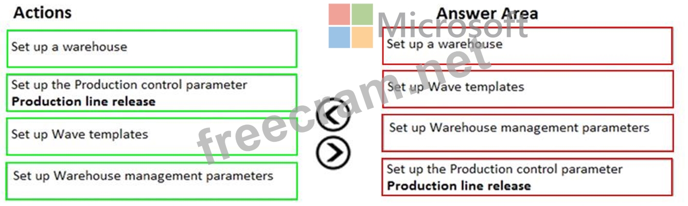 A company uses the Dynamics 365 for Finance and Operations Warehouse management module. The company requires production waves to be processed in batch. You need to configure wave processing. In which order should you perform the actions? To answer, move all actions from the list of actions to the answer area and arrange them in the correct order.