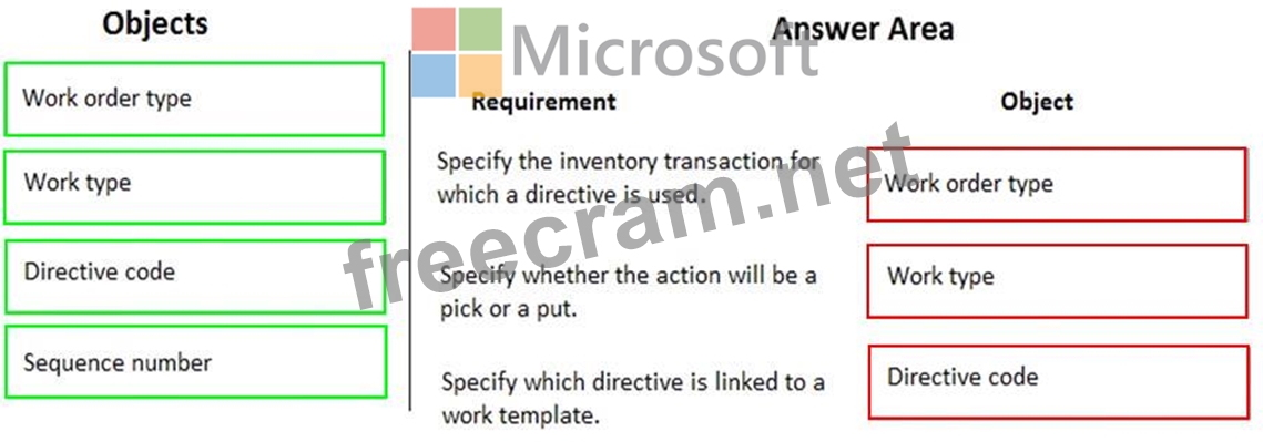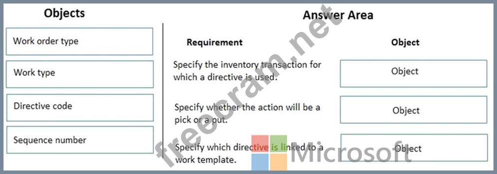 You need to implement location directives in Dynamics 365 for Finance and Operations. Which objects should you use? To answer, drag the appropriate objects to the correct permissions. Each object may be used once, more than once, or not at all. You may need to drag the split bar between panes or scroll to view content. NOTE: Each correct selection is worth one point.
