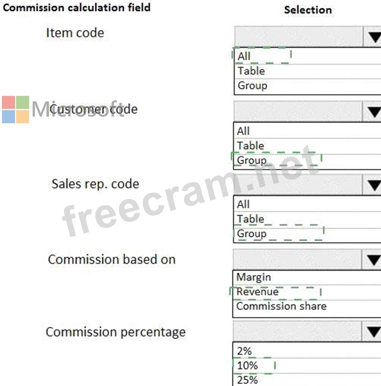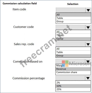 You must configure commissions for the sales representatives in the Midwest region. The calculations must meet the following requirements: