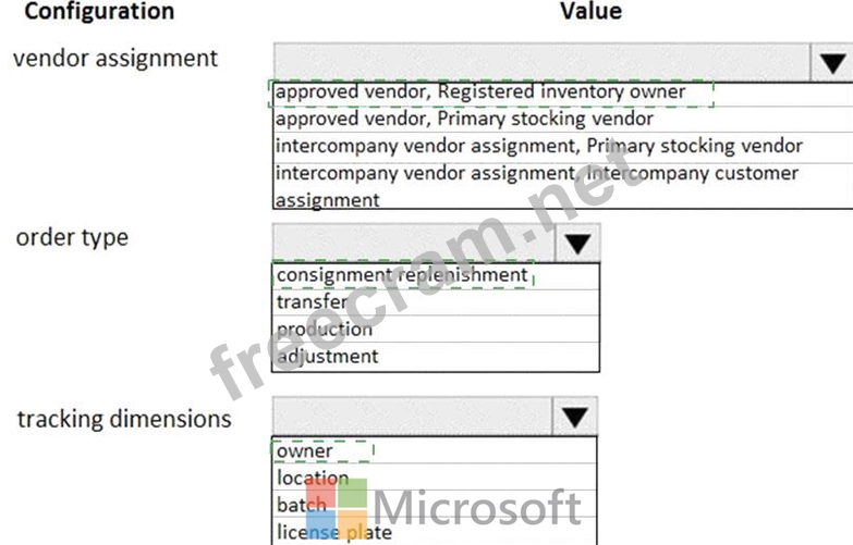 A company must set up replenishment of inventory using vendor-owned consignment inventory.
